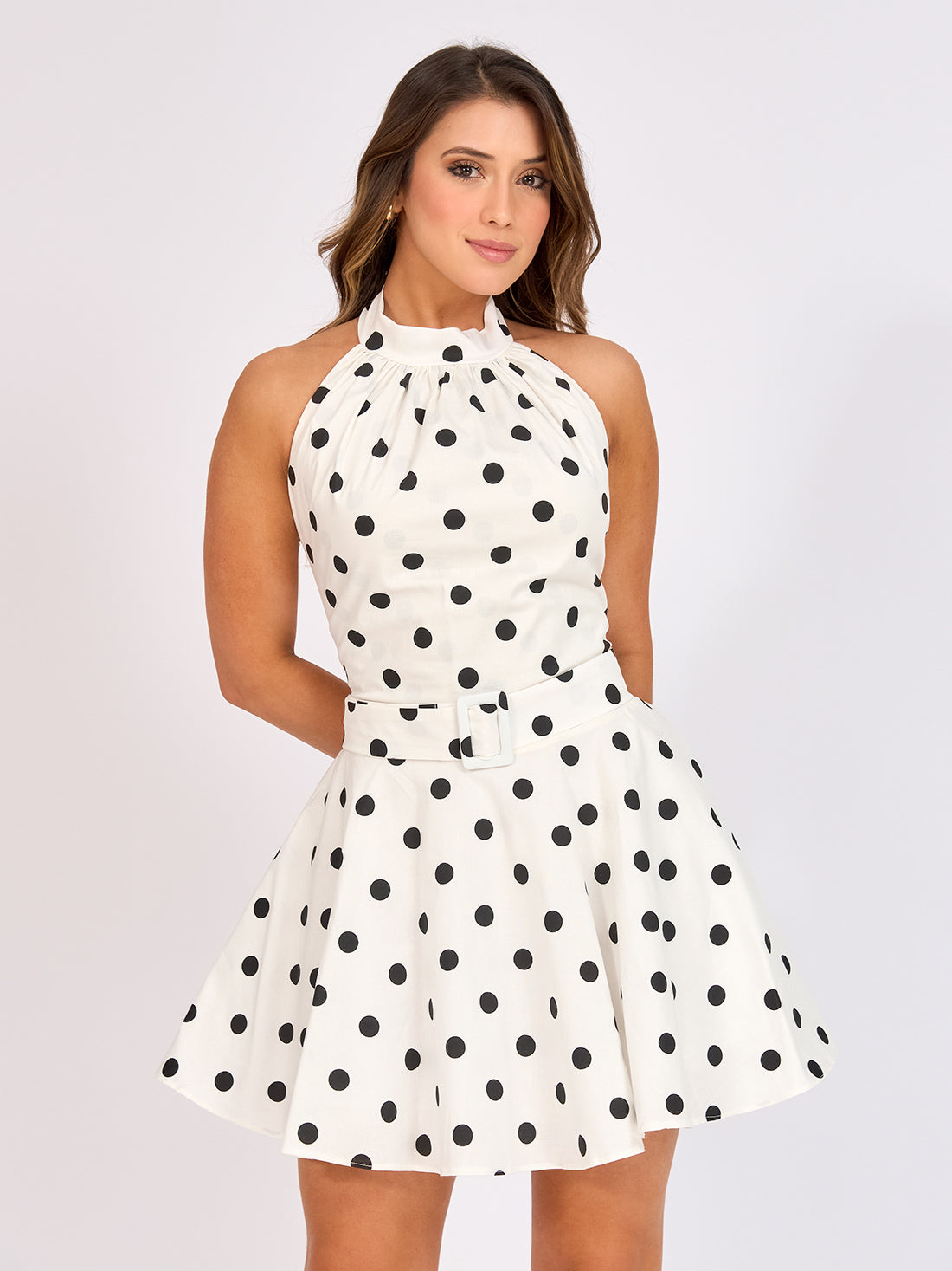 Vestido Lunares Con Cuello Halter y Amarre Posterior